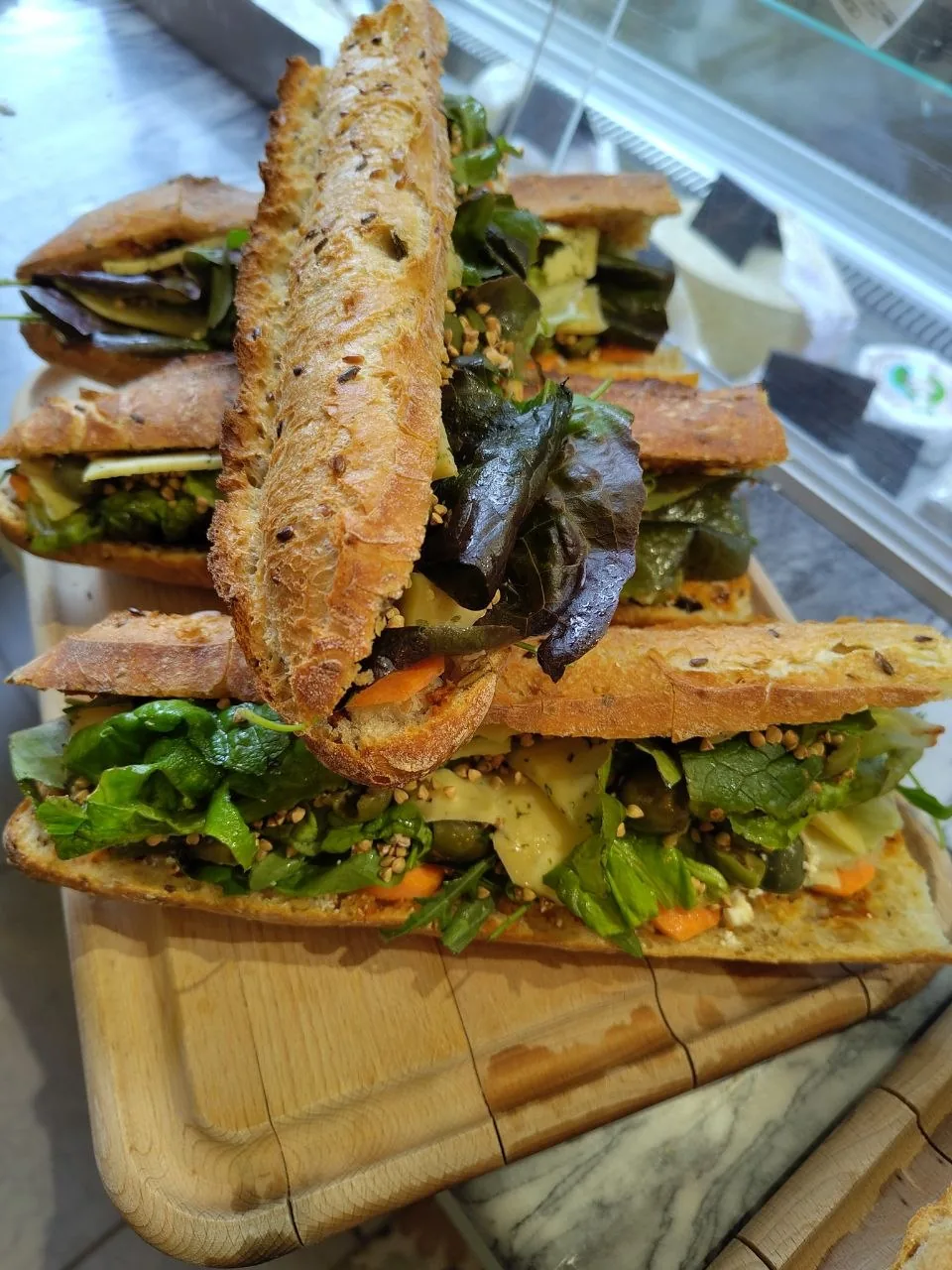Faits maison chaque matin, sur pain artisanal, avec des ingrédients bio et de saison. Commandez, puis passez les chercher en boutique quand ça vous arrange.